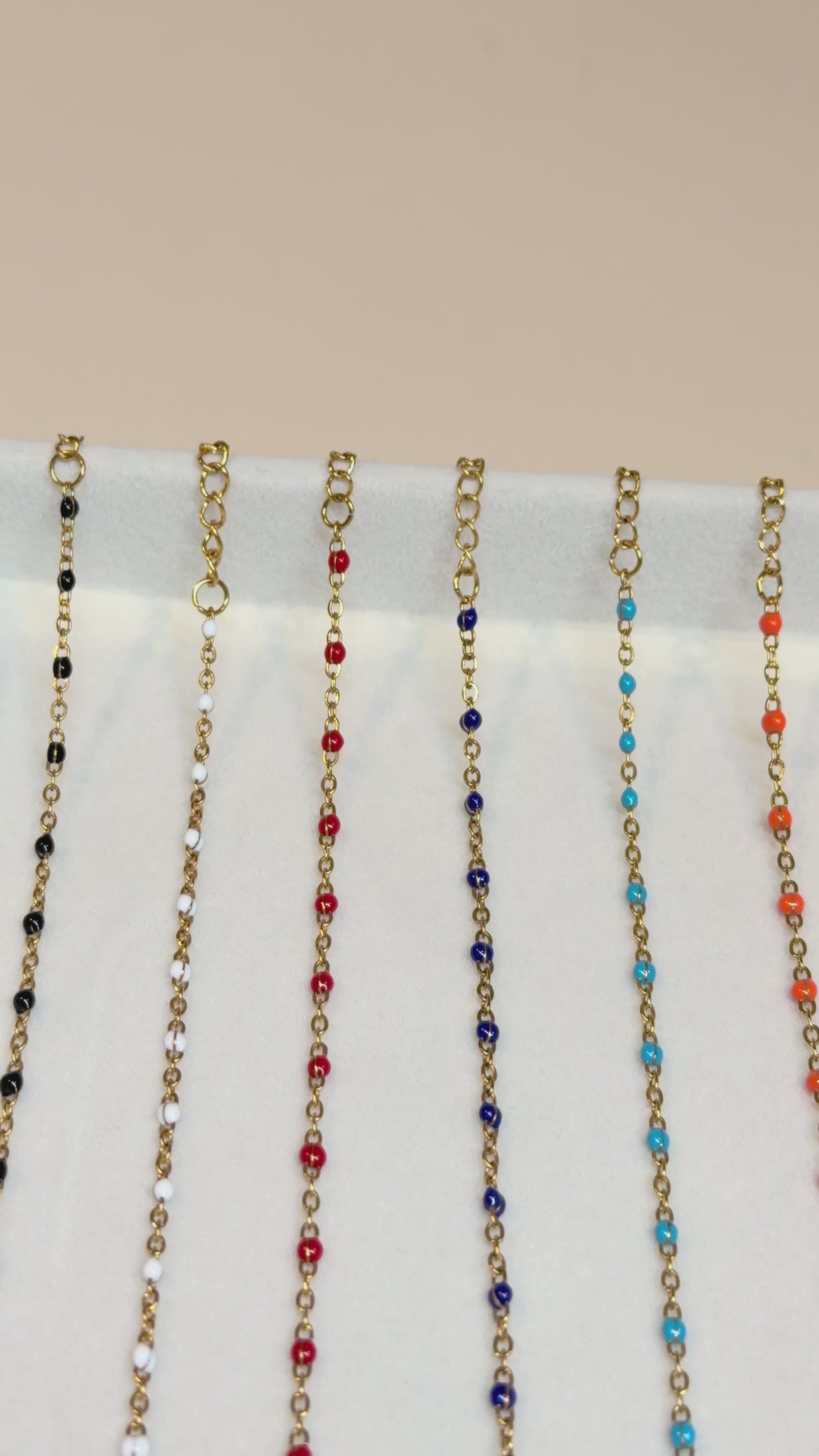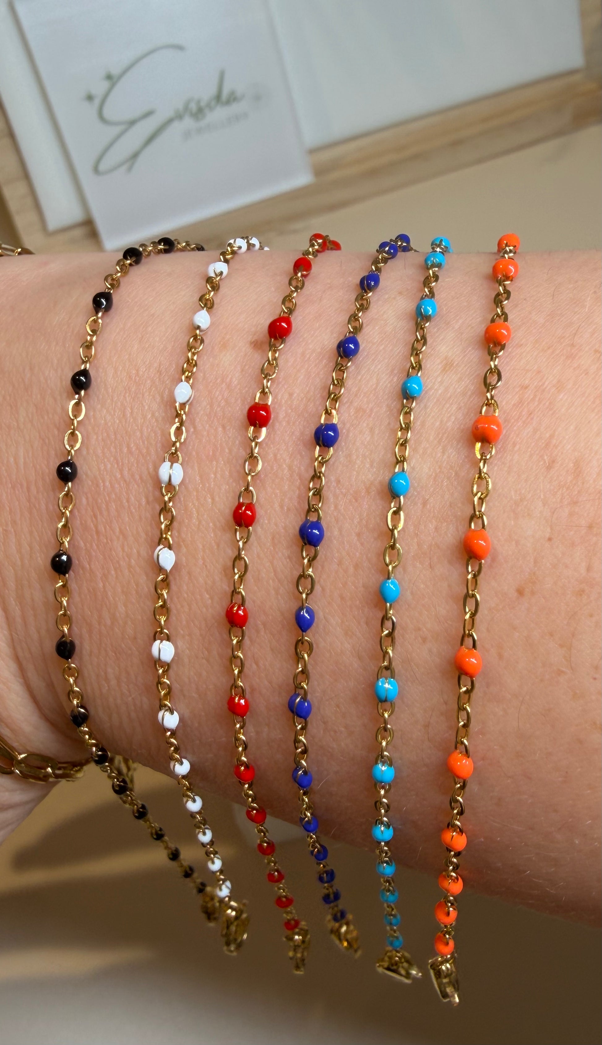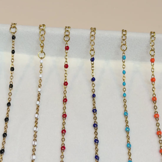 Gorgeous dainty stainless steel chain bracelet with colourful enamel beads.